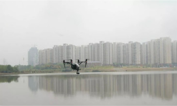 16日上午,一架無人機(jī)正在武漢開發(fā)區(qū)北太子湖面巡視,三三兩兩的人群在湖邊綠道散著步,平靜的湖面上幾朵白色的睡...